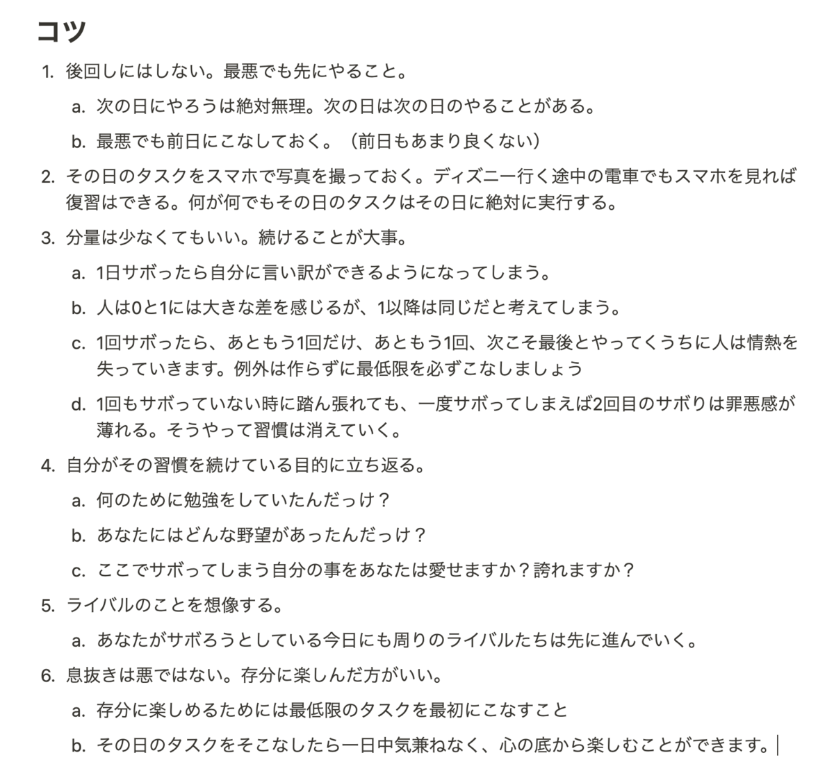 この例外を作らないと言うのは、具体的にはディズニーでも海外旅行でも計画を実行するくらいの覚悟です。もちろん分量は少なく調整してもいいです。単語帳を3ページとかでもOKです。